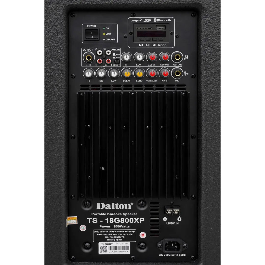 Loa karaoke Dalton TS-18A1800 có bảng điều chỉnh ở mặt sau với các nút bấm được dán nhãn rõ ràng để dễ quan sát và điều chỉnh âm thanh chính xác cho cả âm thanh loa và micrô, mang đến sự tiện lợi cho người dùng.