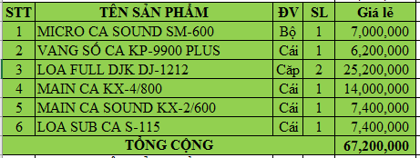 DÀN KARAOKE CAO CẤP VIP CA 29