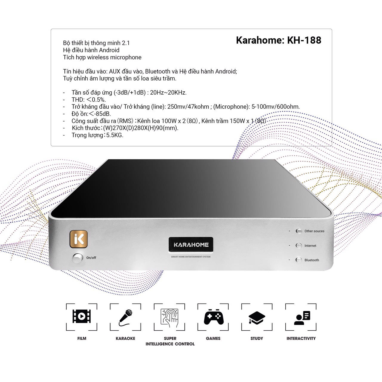 Dàn âm thanh gia đình Karahome với thiết kế tinh tế cho âm thanh xem phim sống động như ở rạp, âm thanh nghe nhạc chuẩn hi-end, cùng khả năng hát karaoke siêu việt.