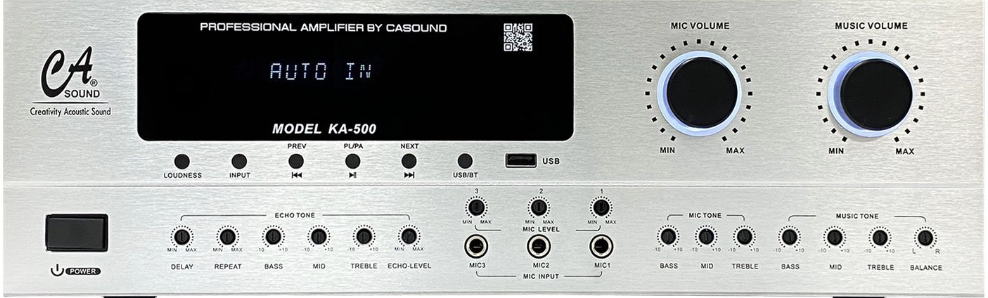 - Cấu trúc tăng âm: Điều chỉnh nhạc và micro bằng tay dễ dàng. Mạch công suất Class H và sử dụng biến áp Xuyến