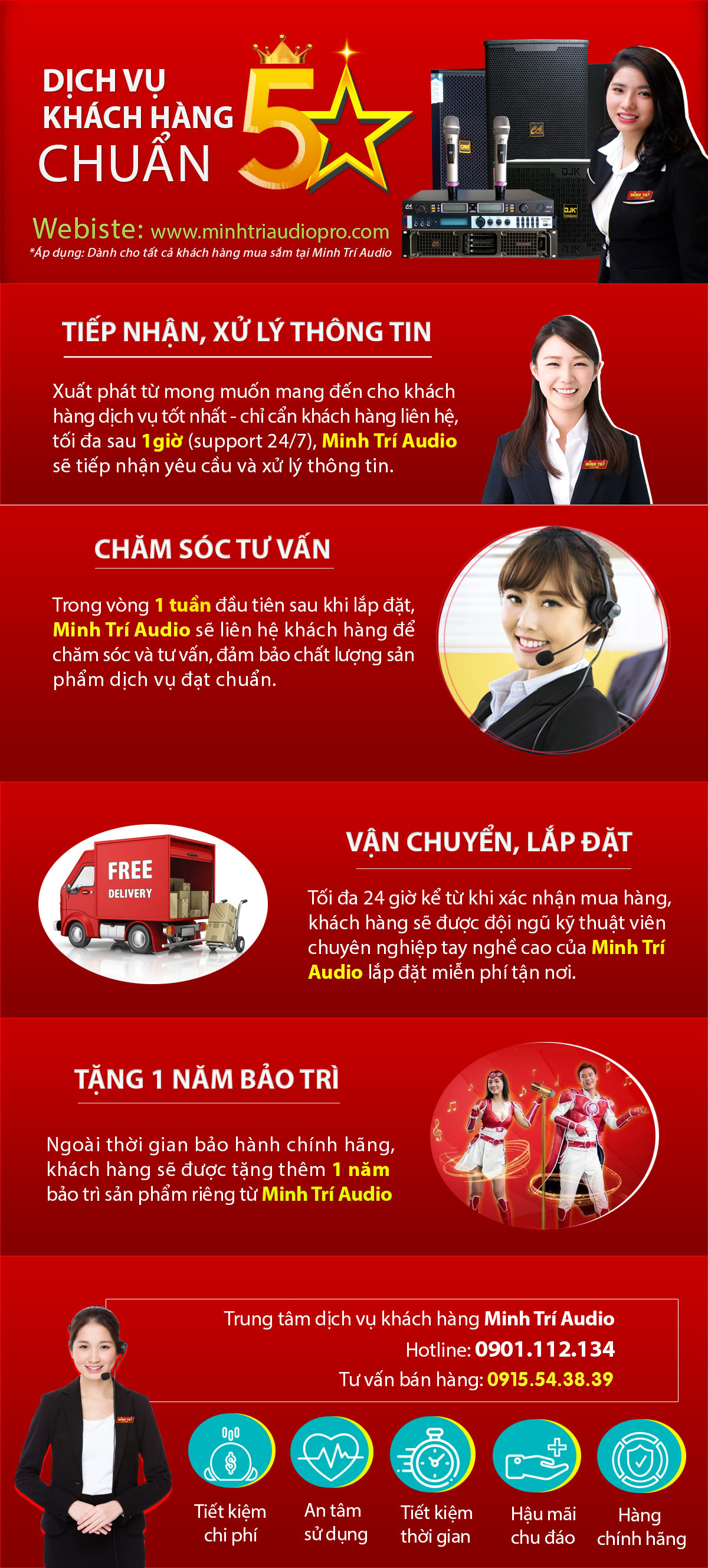 Tiêu chí phục vụ khách hàng của Minh Trí Audio chuẩn 5 sao.
