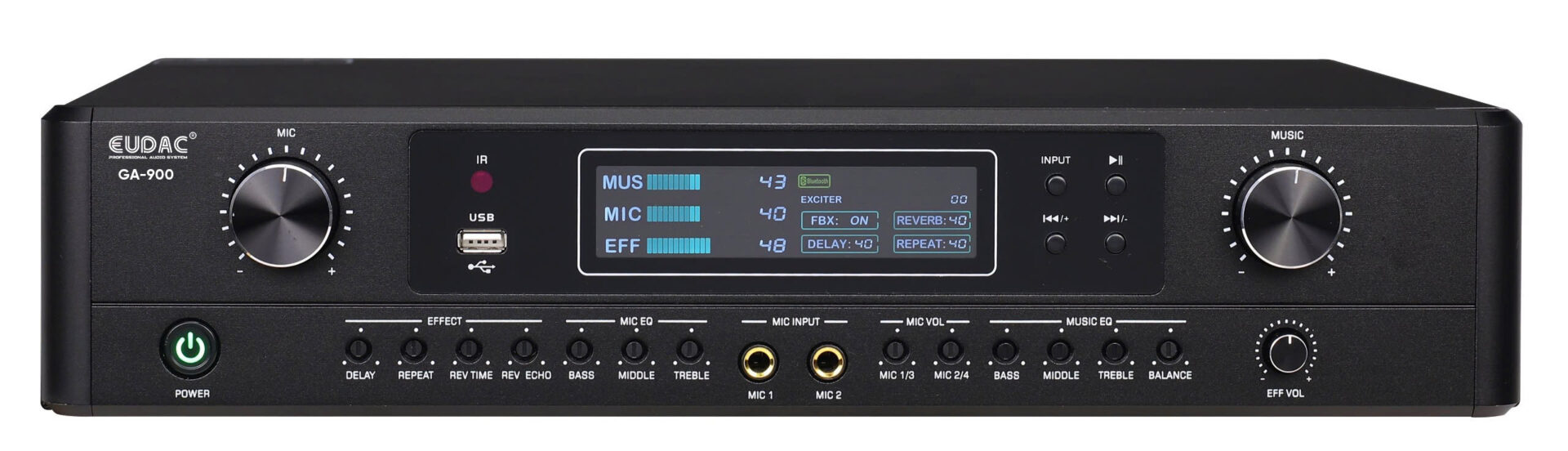 Với các kết nối đầu vào đa dạng như dây AV, Bluetooth, USB, và thẻ nhớ, cùng các kết nối đầu ra loa 4 trạm màu đỏ đen, Amply EUDAC GA-900 mang đến sự tiện lợi và linh hoạt trong quá trình sử dụng. Amply cũng có mạch chống hú rít HPF và mạch bảo vệ chống quá tải cho thiết bị và loa, tăng cường độ an toàn và độ tin cậy trong quá trình vận hành. Ba núm điều chỉnh chính cho âm lượng nhạc, mic, và hiệu ứng vang độc lập cho phép người dùng tùy chỉnh âm thanh một cách mạnh mẽ và nhạy bén.