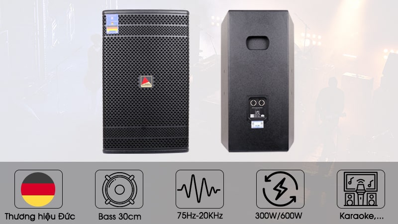 - Cấu trúc loa: 1 bass 30cm + 1 treble kèn