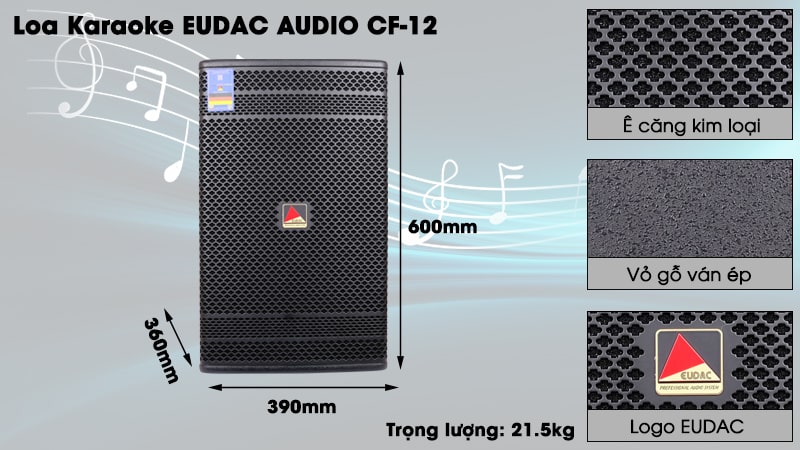 Loa Full EUDAC CF-12 sở hữu công suất đáng kinh ngạc, với 300W RMS và 600W Peak, cho phép bạn thưởng thức âm nhạc với âm lượng vượt trội và chất lượng âm thanh xuất sắc.