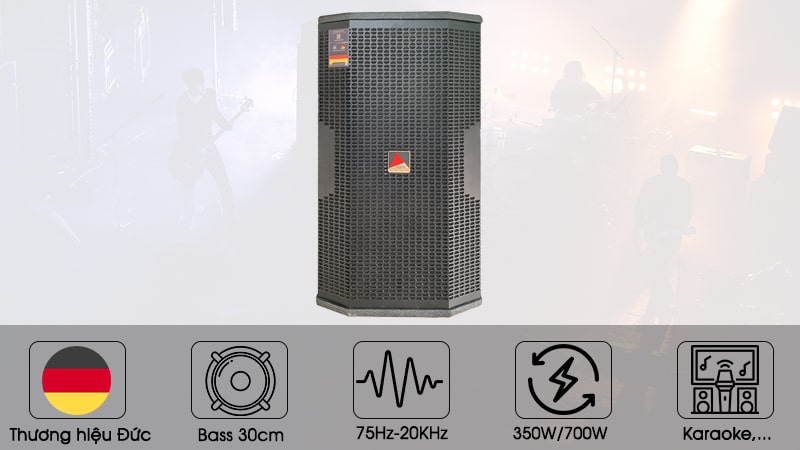 - Cấu trúc loa: 1 bass 30cm + 1 treble kèn