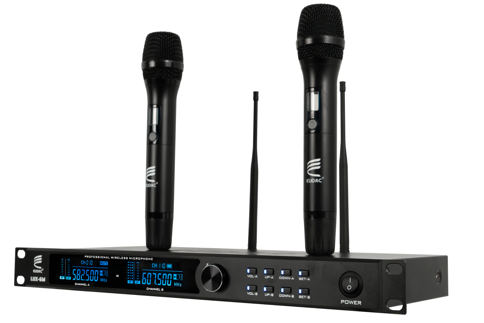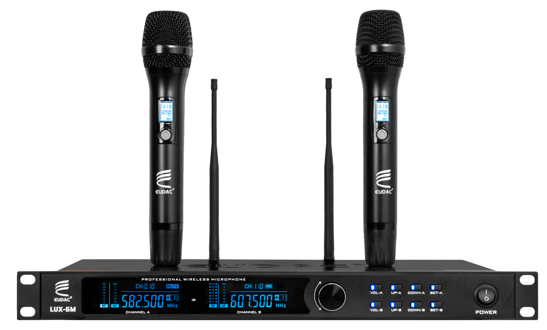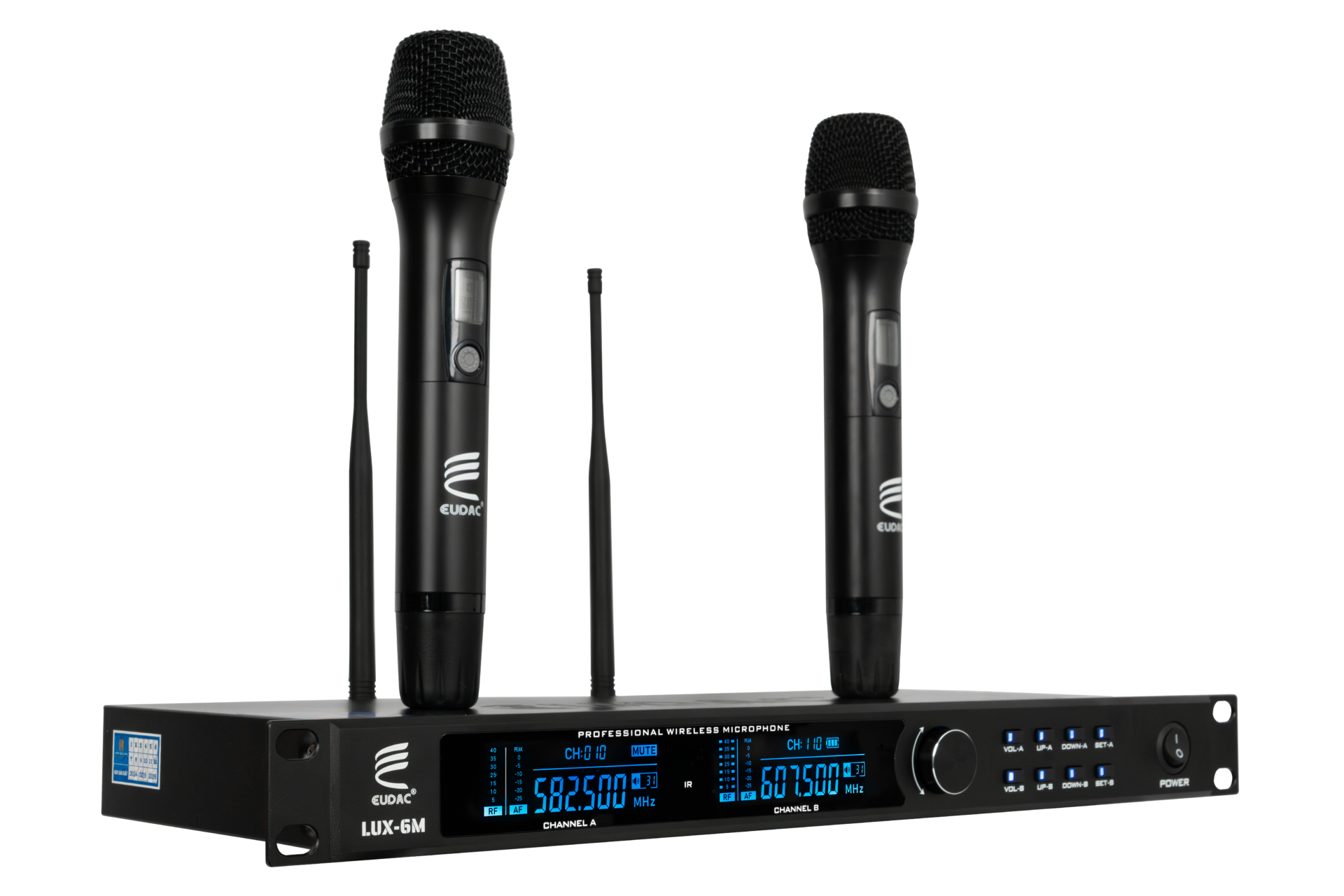 Micro không dây EUDAC AUDIO LUX-6M gây ấn tượng với thiết kế hiện đại, chuyên nghiệp, phù hợp với cả lắp đặt sân khấu, hội trường hay karaoke cao cấp. Bộ sản phẩm bao gồm hai tay micro không dây và một đầu thu tiêu chuẩn kích thước 1U, dễ dàng gắn vừa các tủ rack âm thanh.