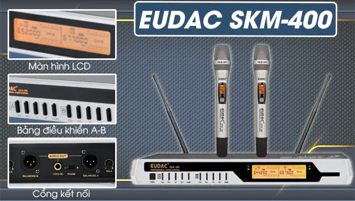 Với những tính năng nổi trội kết hợp cùng với ngoại hình tinh tế, đẹp mắt micro karaoke EUDAC AUDIO SKM-400là sự lựa chọn tốt cho những ai cần một hệ thống micro chuyên nghiệp với độ ổn định cao, khả năng thu âm sáng rõ, và khả năng hoạt động linh hoạt trong nhiều môi trường khác nhau. Dòng micro này đáp ứng được các yêu cầu khát khe từ hát live, hội thảo đến sân khấu chuyên nghiệp.