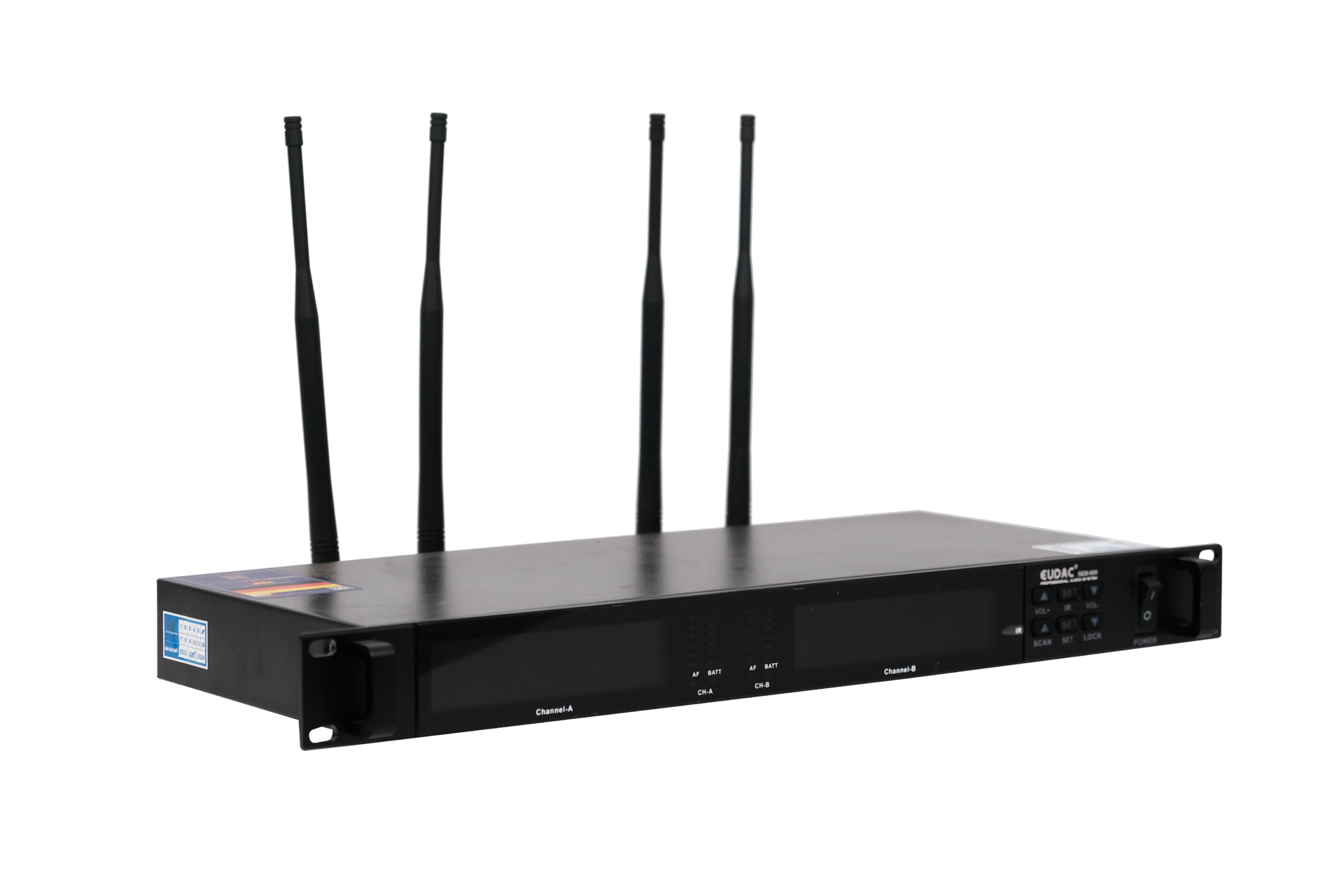 Mặt sau micro kraoke EUDAC SKM-600 là hệ thống các cổng kết nối đa da dạng được ký hiệu một cách chi tiết và sắp xếp một cách khoa học giúp người dùng thuận tiện ghép nối cùng các thiết bị khác, cùng với đó là 4 ăng ten thu phát sóng đảm bảo âm thanh chi tiết và rõ ràng nhất. Với tần số này cũng hỗ trợ giọng hát tối đa loại bỏ hoàn toàn tạp âm và các loại sóng khác giúp cho chất lượng âm thanh được đảm bảo nhất.