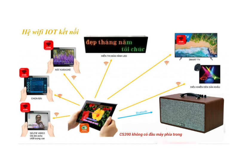Bạn có thể lựa chọn bài hát trên smartphone, tablet, ipad một cách nhanh chóng mà không cần dùng mạng internet, chỉ việc kết nối không dây với các thiết bị di động qua app CloudKaraoke với hàng chục ngàn bài hát karaoke chất lượng cao.