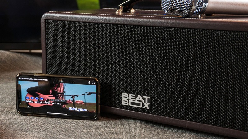 Ứng dụng đi kèm có sẵn trên 2 hệ điều hành Android và iOS là Cloud Karaoke cho phép bạn sử dụng kho nhạc có sẵn online với gần 40 ngàn bài hát tiếng Việt, tiếng Anh được lựa chọn dựa theo bài hát, ca sĩ, tác giả hay thể loại… Và thậm chí bạn cũng có thể download về những gói nhạc offline tha hồ mang xách đi những nơi không có mạng. Beatbox cũng có khả năng kết nối đến 8 thiết bị di động cùng xem video karaoke, cùng điều khiển và chọn bài. USB 32GB kèm theo máy đã chứa hàng ngàn bài hát, bạn chỉ cần ghim vào cổng và có thể chọn bài hát ngay trên ứng dụng của mình.
