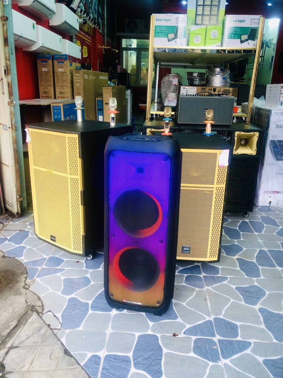 - Chức năng đặc biệtBT / FM / USB / SD / TWS / X-BASS / GHI ÂM / Công tắc bật / o LED, Ưu tiên micrô, Đèn LED