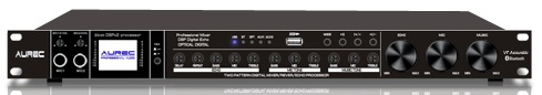 - Mặt trước gồm các nút chức năng như nút chỉnh echo, mic tone và music tone cùng các khe cắm míc, đèn tín hiệu kết nối