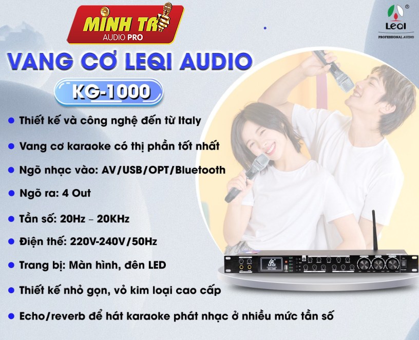 Những thiết bị vang cơ chất lượng luôn được nhiều người dùng quan tâm và tìm kiếm những sản phẩm này đang được các thương hiệu về ân thanh nghiên cứu để cho ra những sản phẩm tốt nhất. LEQI KG-1000 là một trong những sản phẩm vang cơ chất lượng của hãng âm thanh LEQI. Không chỉ nổi bật về mặt thiết kế mà về mặt chất lượng cũng được đánh giá rất cao.