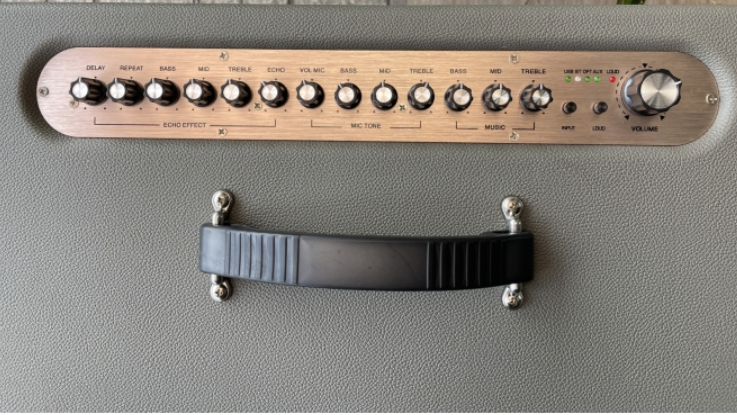 Một trong những đặc điểm ấn tượng trong thiết kế của loa phải kể đến chức năng điều chỉnh echo cho mic, bass và treble. Ngoài ra, loa cũng được trang bị cổng kết nối và nút điều chỉnh đàn guitar để bạn thỏa sức với đam mê âm nhạc của mình.