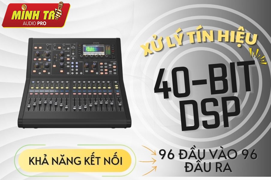 Midas M32R LIVE sử dụng công nghệ 40-bit floating point DSP, đảm bảo khả năng xử lý tín hiệu số chính xác và không bị mất chi tiết âm thanh. Điều này cho phép người dùng tinh chỉnh âm thanh một cách tinh tế và mượt mà, giữ nguyên sự trung thực và độ chi tiết của âm nhạc. Midas M32R LIVE cũng đi kèm với 8 công cụ hiệu ứng DSP, mang đến những hiệu ứng âm thanh đa dạng, từ reverb, delay cho đến các hiệu ứng động học, tất cả đều được xử lý với độ chính xác cao.