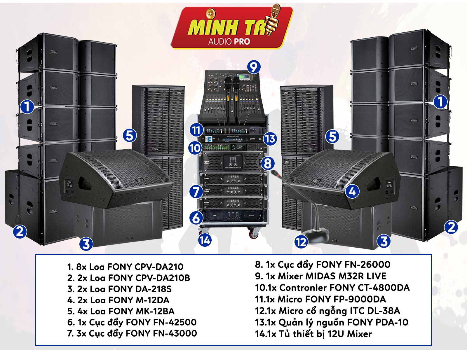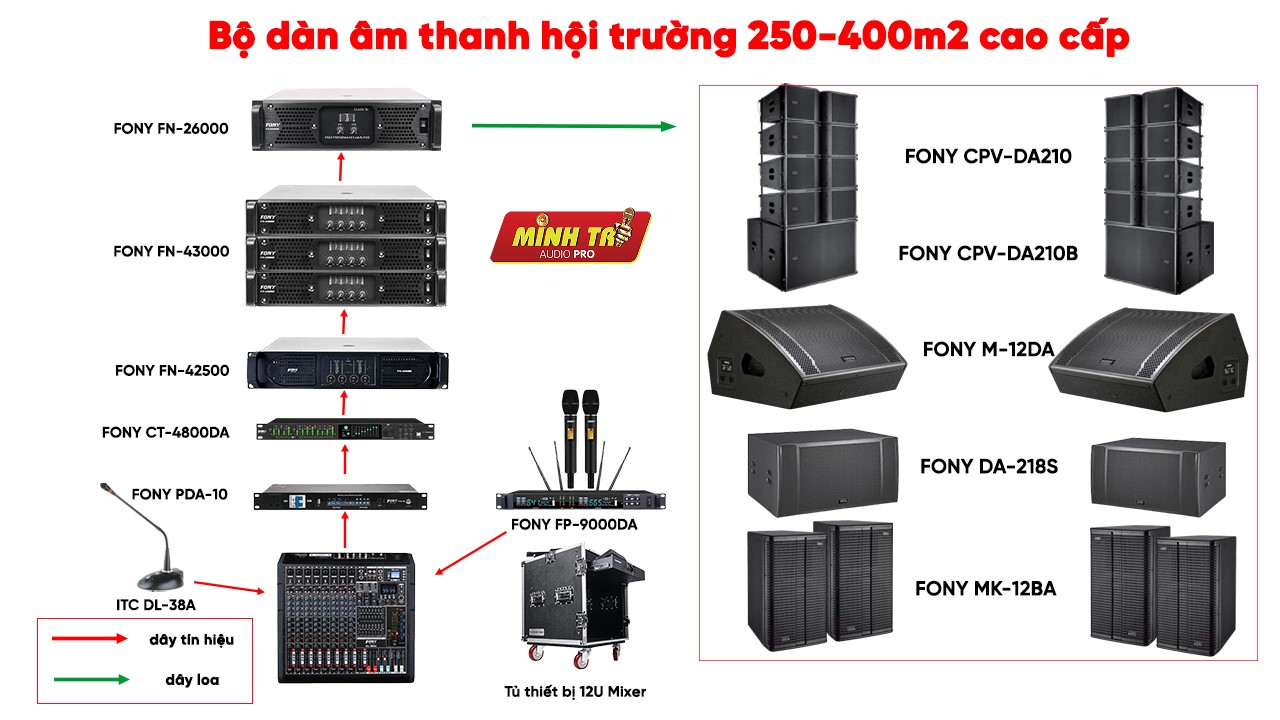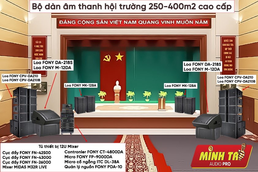 Cấu hình dàn âm thanh hội trường 250-400m2 cao cấp gồm: