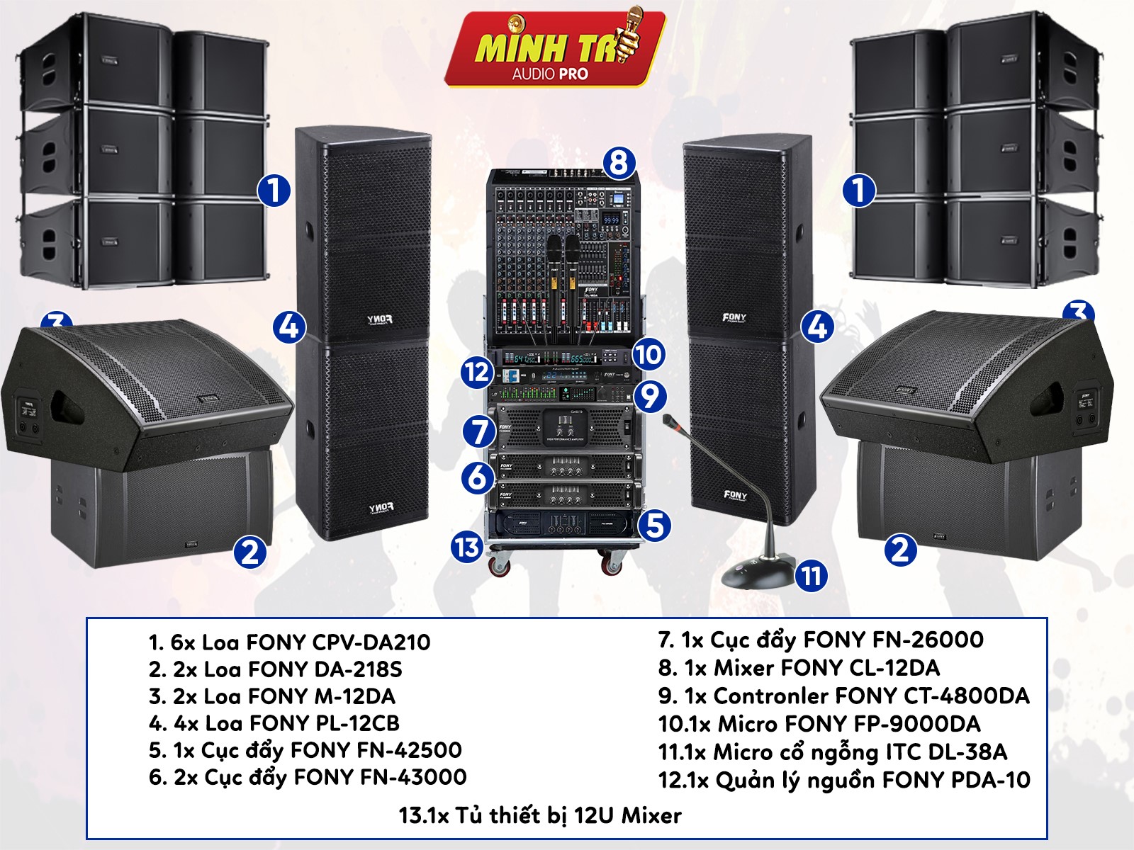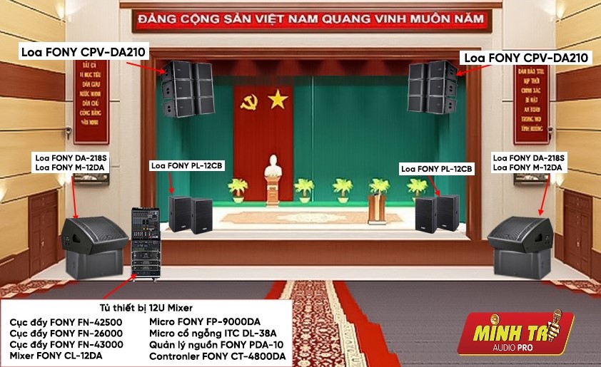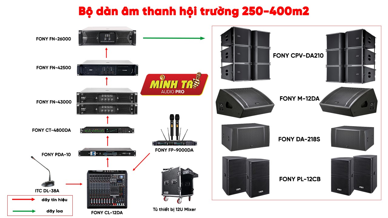 Cấu hình dàn âm thanh hội trường 250-400m2 gồm: