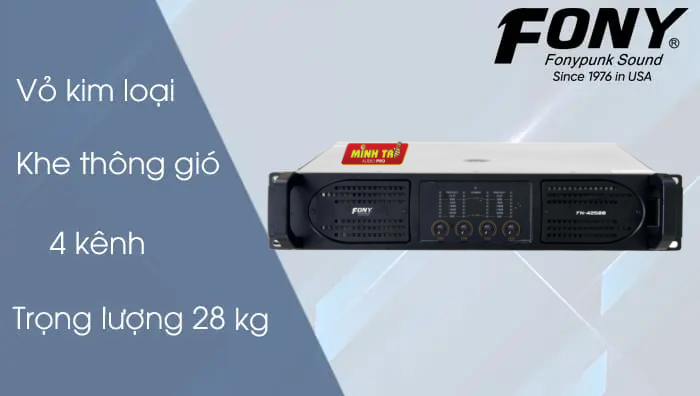 Cục đẩy công suất Fony FN-42500 là một sản phẩm nổi bật trong dòng thiết bị âm thanh chuyên nghiệp, được thiết kế để cung cấp công suất mạnh mẽ và hiệu suất tối ưu cho các hệ thống âm thanh lớn. Được trang bị công nghệ tiên tiến và đảm bảo đáp ứng các tiêu chuẩn quốc tế, cục đẩy 4 kênh này không chỉ nổi bật về hiệu suất mà còn về độ bền và khả năng hoạt động ổn định trong thời gian dài.