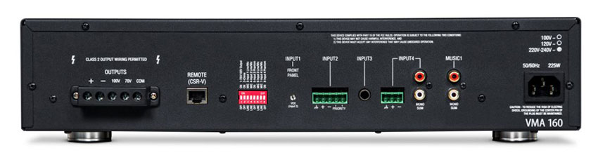 JBL VMA 160 có 5 đầu vào với tính ra tổng hợp đơn âm và 1 đầu ra với công suất đầu ra 60W.