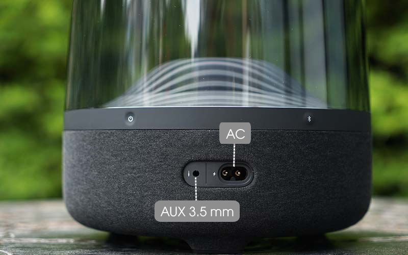 Bên cạnh các kết nối không dây Bluetooth, Wireless Dual Sound thì loa Harman Kardon Aura Studio 3 chỉ còn có 2 cổng kết nối là AUX 3.5 mm và cổng nguồn dạng số 8. Mặc dù số cổng kết nối ít nhưng loa vẫn đảm bảo vận hành và kết nối với các thiết bị khác dễ dàng, đáp ứng mọi nhu cầu của người dùng.