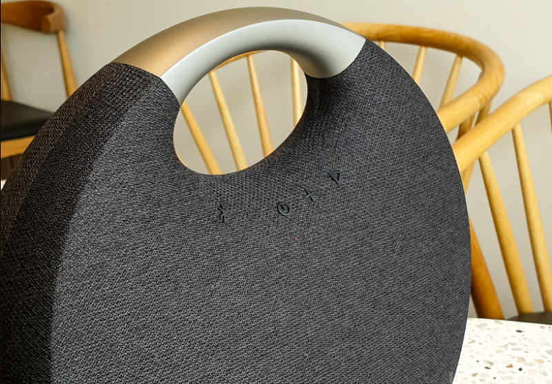 Trên loa được bố trí tay cầm bằng nhôm như quai xách cho người dùng loa Bluetooth Harman Kardon Onyx Studio 5 có thể di chuyển linh hoạt hoặc đặt sản phẩm dễ dàng.