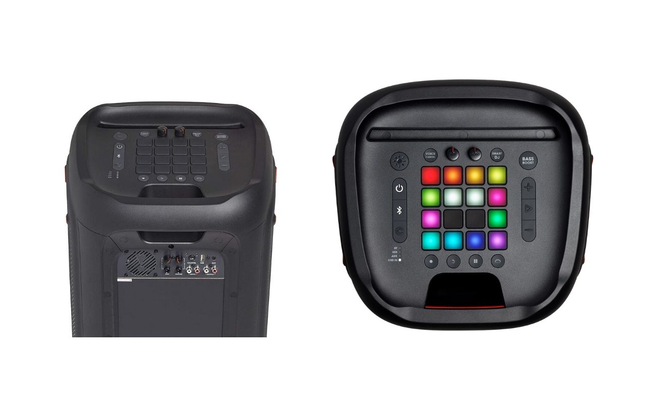 JBL luôn nổi tiếng là vô cùng hiểu người dùng khi luôn trang bị những điều cần thiết trên sản phẩm của mình. Cụ thể trên PartyBox 1000 nhà sản xuất không chỉ thiết kế bánh xe để dễ dàng di chuyển, mà còn vẫn giữ phần tay nắm ở đầu loa. Cùng với đó vẫn giữ nguyên đế cao su ở hai bên hông loa giúp loa có thể nằm ngang và nằm đứng. Cùng với đó ở phía sau JBL còn trang bị một quạt tản nhiệt vì công suất của loa quá lớn. Và rất nhiều cổng kết nối hỗ trợ cho người dùng, mặc dù đây đã là loa Bluetooth.