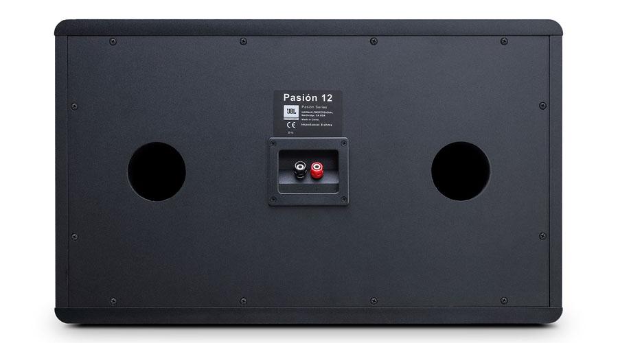 JBL Pasion 12 được thiết kế kiểu thùng loa bass-reflex với 2 lỗ thoát hơi bass ở mặt sau, nhờ cộng hưởng thêm không gian phía sau loa, âm bass thêm sức mạnh và có độ phủ hơn. Trạm loa được thiết kế để có thể sử dụng Jack cắm bắp chuối dễ dàng kết nối.