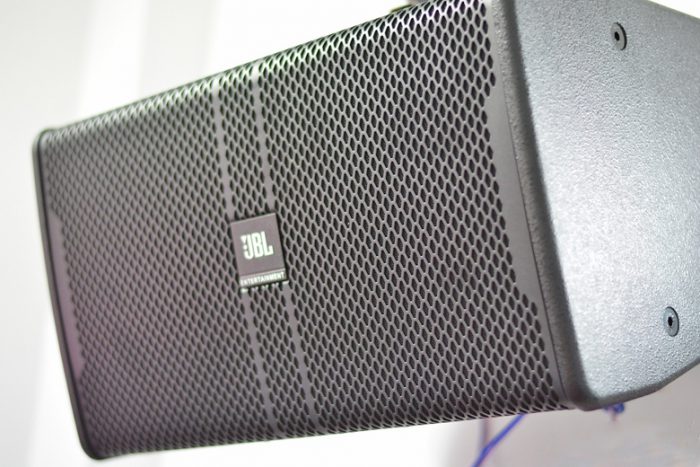 Loa karaoke JBL KP4015 có thể đặt đứng dưới sàn hoặc treo ngang, logo JBL có thể xoay ngược 360 độ nên dễ dàng lắp đặt với mọi không gian phòng hát khác nhau mà không lo về mặt thẩm mĩ căn phòng.