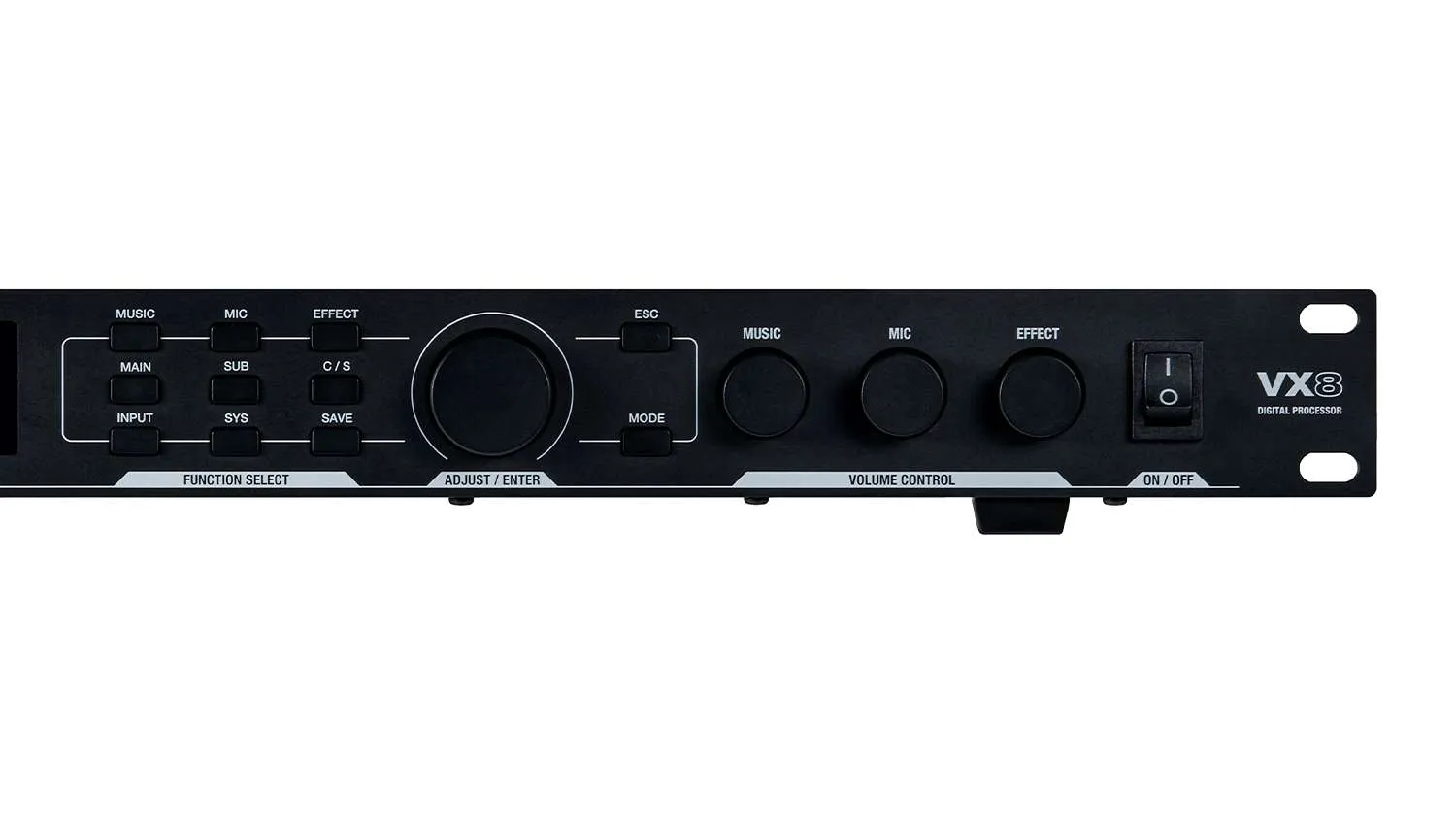 Vang số JBL VX8 sử dụng phần mềm để điều chỉnh sâu các hiệu ứng. Việc thiết lập cấu hình trước và sử dụng nút chọn thiết bị sẽ tiện lợi và nhanh chóng hơn. Bộ trộn có EQ 15 băng tần tích hợp để điều chỉnh mic và EQ 15 băng tần để điều chỉnh nhạc.