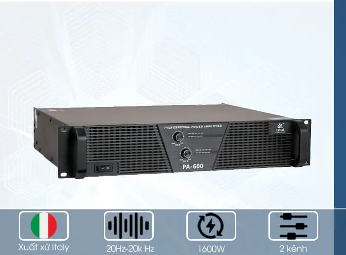 Cục đẩy công suất LEQI PA 600 là cục đẩy 2 kênh có công suất mỗi kênh là 600W với 8 ohms, 900W ở mức 4 ohms và 1000W ở chế độ 2 ohms. Với công suất mạnh mẽ như vậy có thể phối hợp với các thiết bị âm thanh khác như loa nghe nhạc, loa karaoke và loa sân khấu bass 25, 30,… để cho ra một dàn âm thanh như ý muốn người dùng.