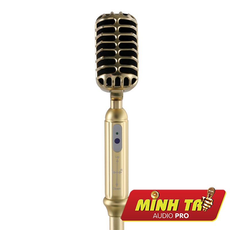 - Thiết kế sắc xảo, đẹp mắt, màu vàng sang trọng. Đuôi micro có thể thay đổi màu sắc theo giai điệu âm thanh