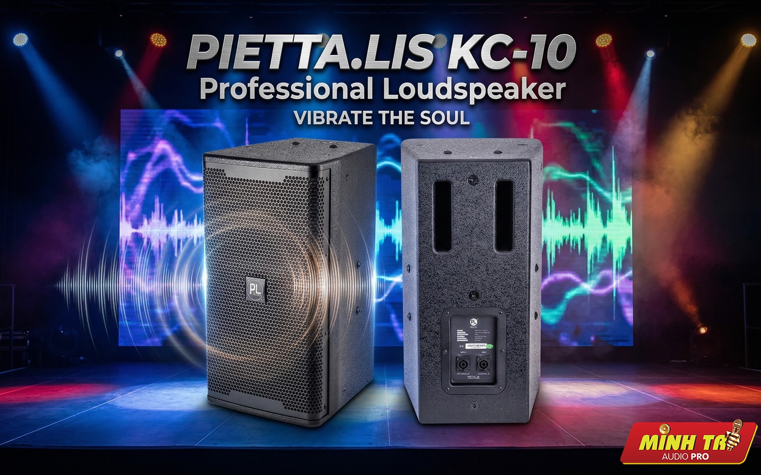 Loa FullRange Pietta.Lis KC-10 là dòng loa karaoke cao cấp 5 đường tiếng, nhập khẩu với công nghệ Đức, nổi bật với 1 bass 25cm (10 inch) và 4 treble giấy. Sản phẩm có công suất RMS 250W, Program 500W và Peak lên tới 1000W , mang lại âm thanh mạnh mẽ, chi tiết, phù hợp cho không gian gia đình và kinh doanh.