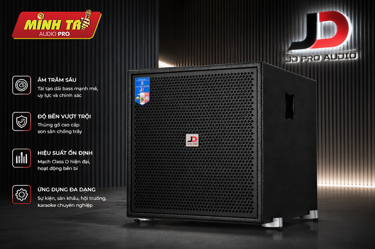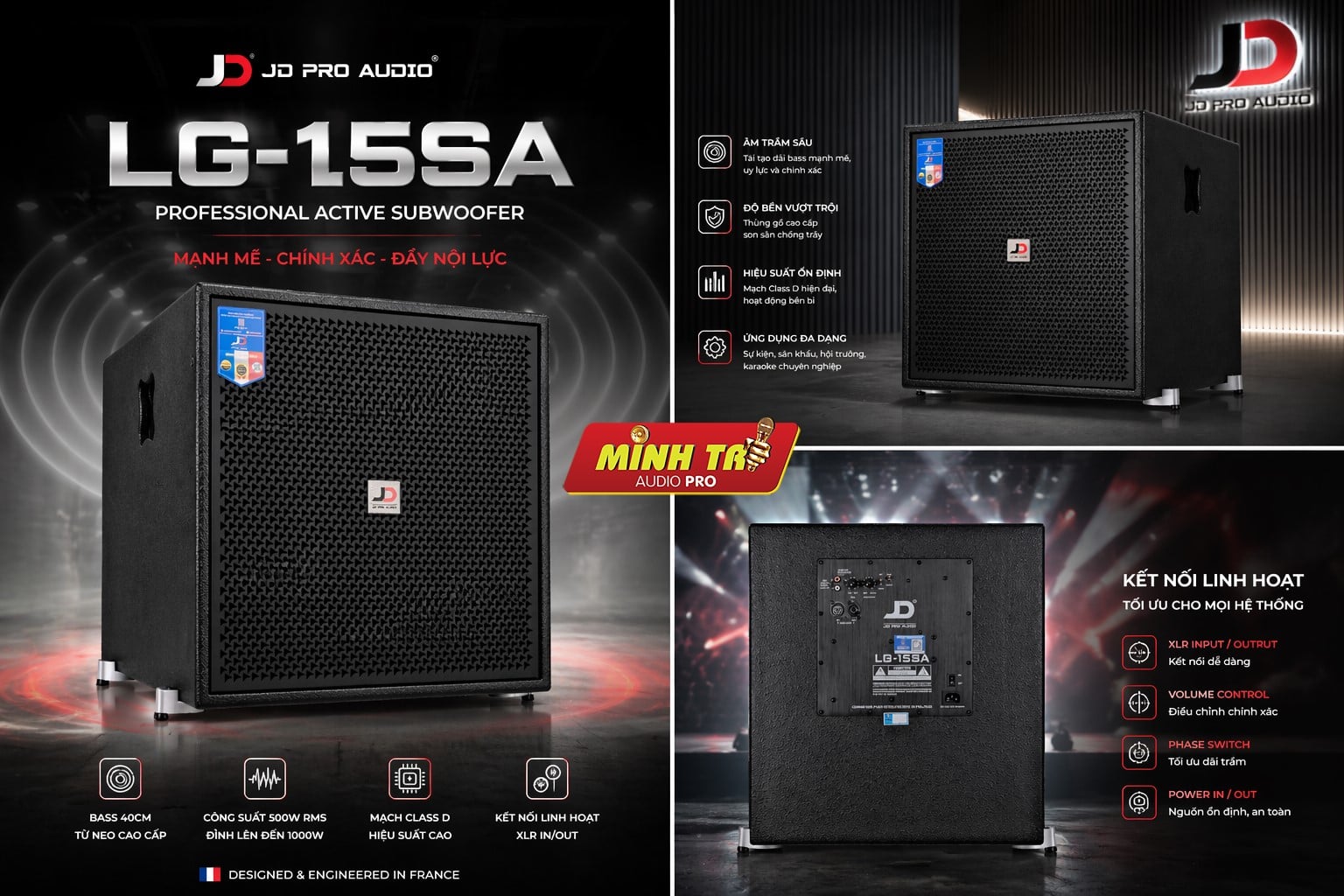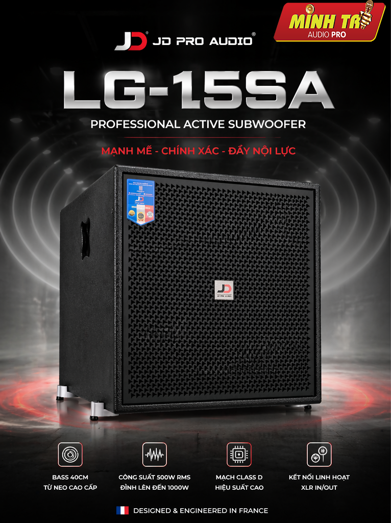 Loa Sub JD PRO AUDIO LG-15SA được trang bị củ bass đường kính 40cm loại active, mang đến khả năng tái tạo dải trầm mạnh mẽ, sâu và uy lực. Với đáp tuyến tần số từ 40Hz đến 200Hz (±3dB), loa tập trung xử lý hoàn hảo những âm trầm thấp, tạo nền âm chắc chắn và đầy nội lực cho toàn bộ hệ thống. Điều này giúp LG-15SA thể hiện tốt ở cả những bản nhạc giàu năng lượng, phim hành động kịch tính hay các buổi biểu diễn sân khấu đòi hỏi hiệu ứng âm thanh sống động.