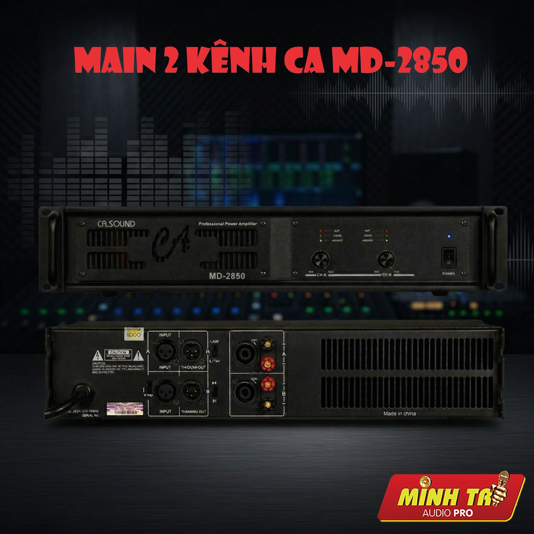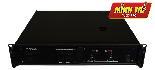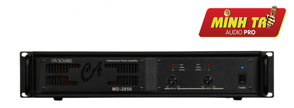 CASound MD 2850 là cục đẩy công suất 2 kênh mạnh mẽ, sử dụng mạch Class H và biến áp xuyến, cung cấp công suất lên tới 1400W/kênh (4Ω) hoặc 850W/kênh (8Ω). Thiết bị này thuộc dòng sản phẩm "siêu khủng" của CA Sound, phù hợp cho hệ thống âm thanh karaoke gia đình và chuyên nghiệp với hiệu suất ổn định.