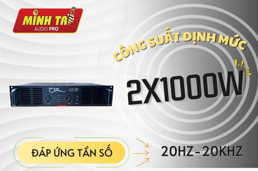 - 2 x 1000W mỗi kênh ở mức trở kháng 8Ω (stereo – hai kênh độc lập)