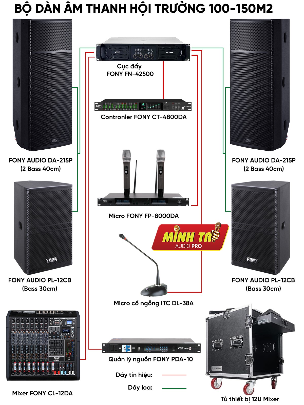 Bộ dàn âm thanh hội trường dành cho không gian 100-150m² là lựa chọn lý tưởng cho những sự kiện tầm trung, từ các buổi hội thảo chuyên nghiệp đến những buổi biểu diễn nghệ thuật. Với thiết kế tinh tế và công nghệ hiện đại, bộ dàn này mang lại âm thanh mạnh mẽ, sắc nét và lan tỏa đều khắp không gian. Sự kết hợp hoàn hảo giữa các thiết bị cao cấp giúp đảm bảo mọi chi tiết âm thanh được tái hiện sống động, chân thực. Hãy cùng khám phá bộ dàn âm thanh này để trải nghiệm sự khác biệt và nâng tầm cho các sự kiện của bạn.