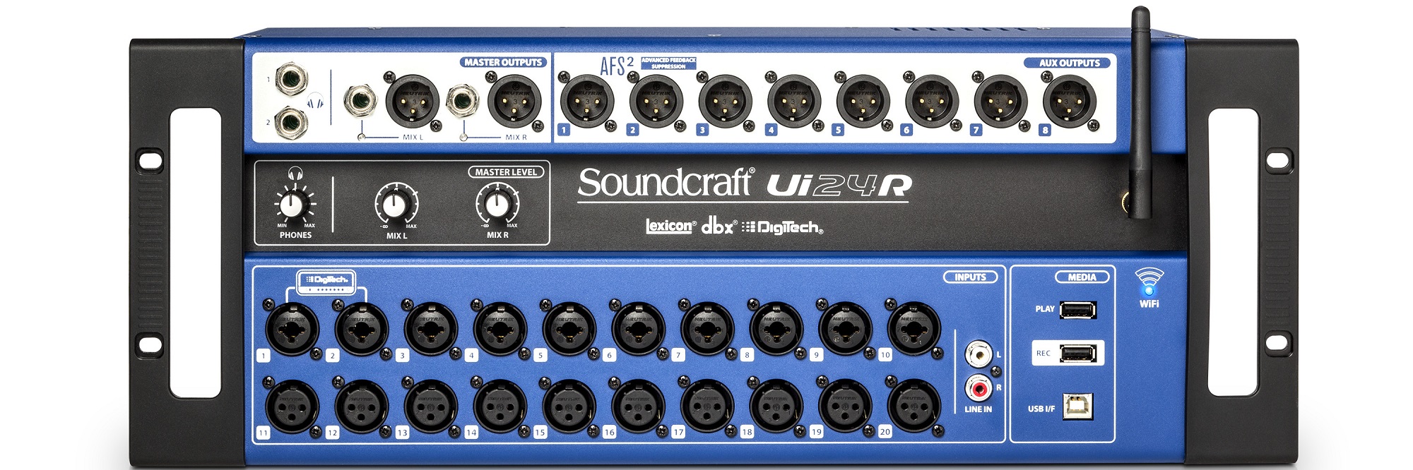 Soundcraft Ui24R tích hợp công nghệ tinh chỉnh âm thanh danh tiếng của Lexicon và Digitech. Nhờ vậy nó có thể tạo ra được những hiệu ứng âm thanh tối ưu cho ca sỹ hoặc nhạc công biểu diễn nhạc sống hoặc trong phòng thu. Thêm vào đó, thiết bị còn có tính năng phát nhạc từ USB và khả năng ghi âm multi track hoàn hảo vào USB và máy tính được kết nối.