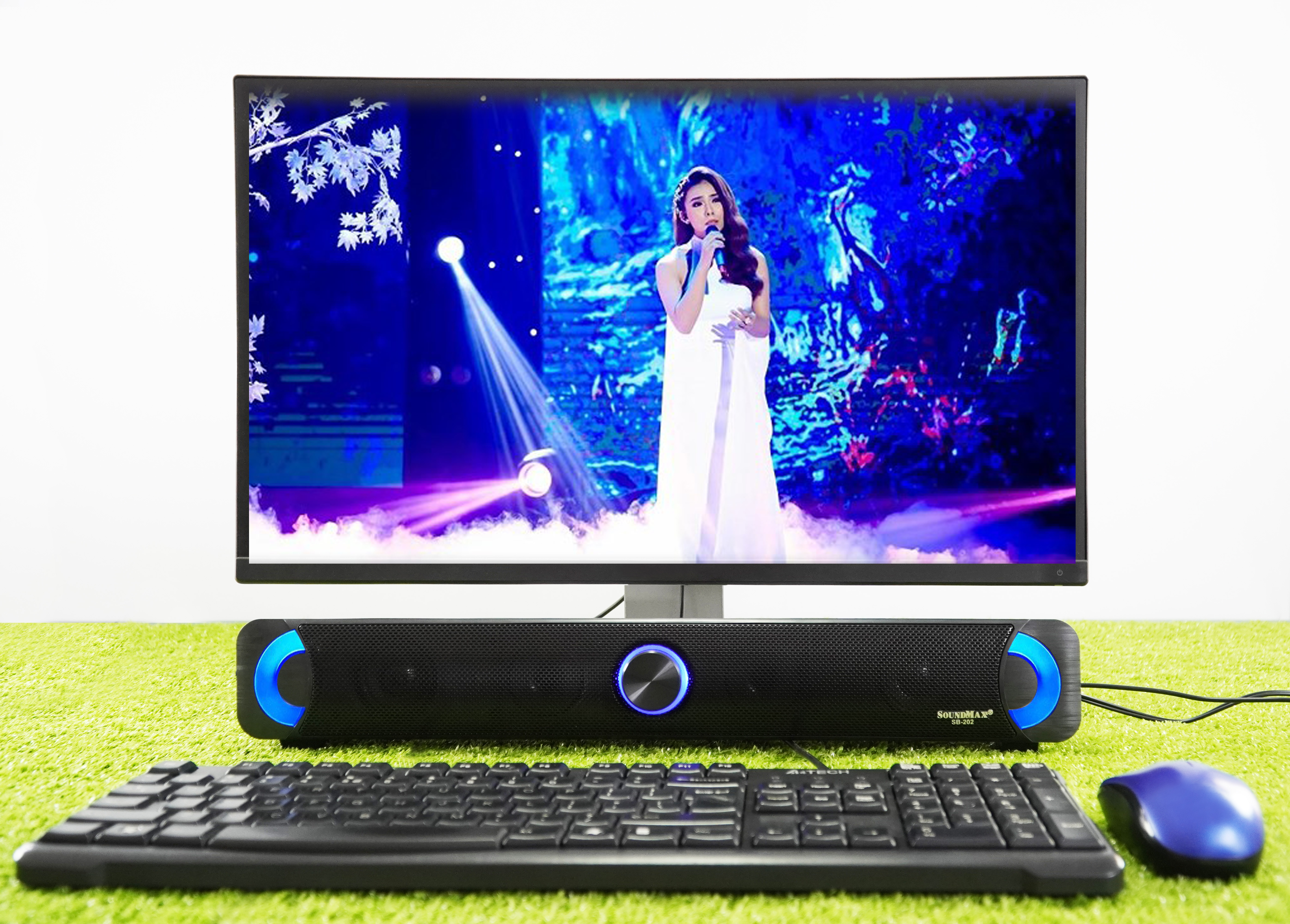 - Hệ thống loa soundbar 2.0,cho âm thanh trong trẻo, rõ ràng nghe được nhiều thể loại nhạc.