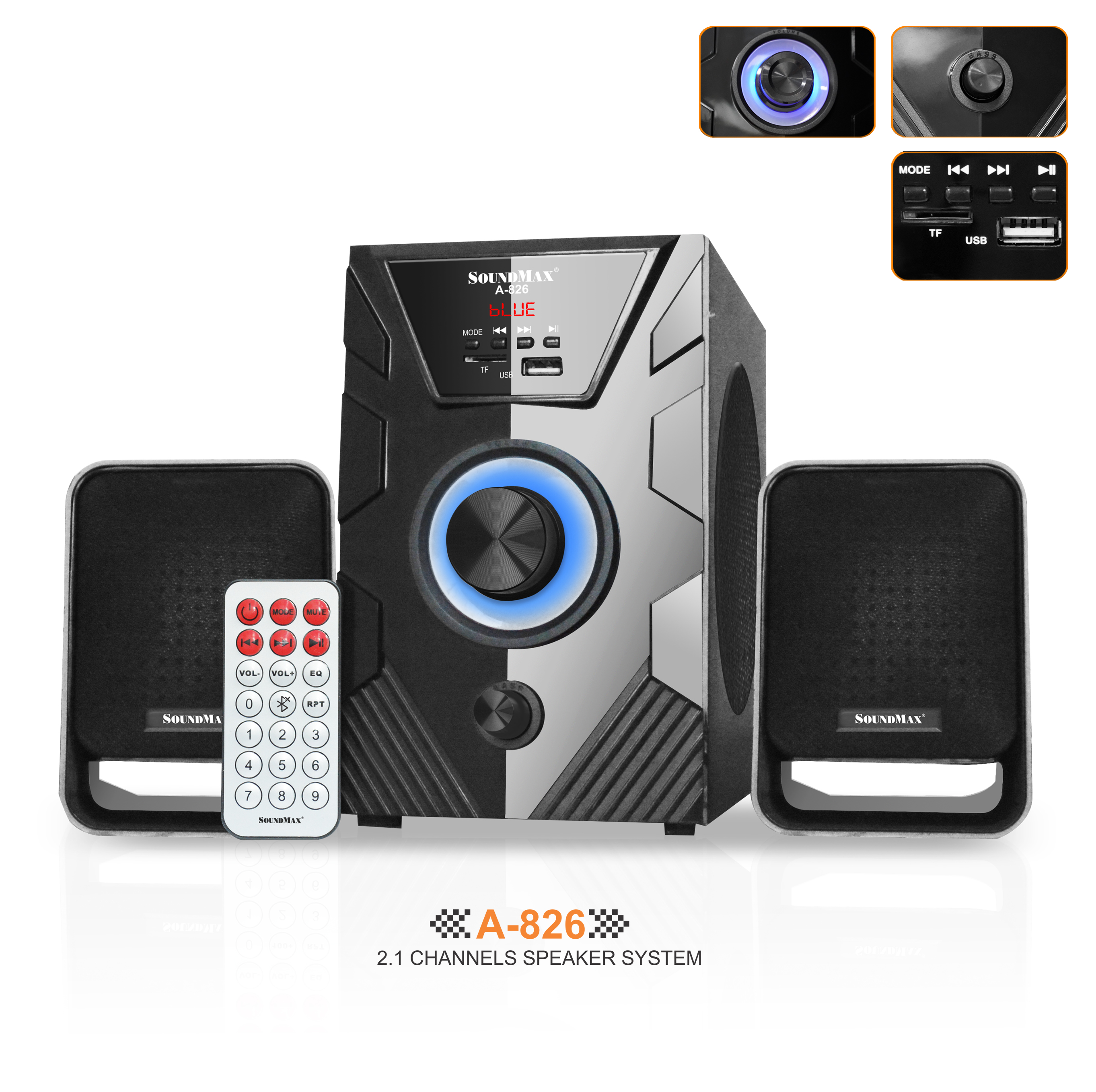 SoundMax A-826 là mẫu loa 2.1 nhỏ gọn, hỗ trợ chơi nhạc từ hầu hết các nguồn phát phổ thông hiện nay như điện thoại, máy tính, laptop, đầu CD/DVD Loa hỗ trợ kết nối không dây Bluetooth chuẩn 5.0...
