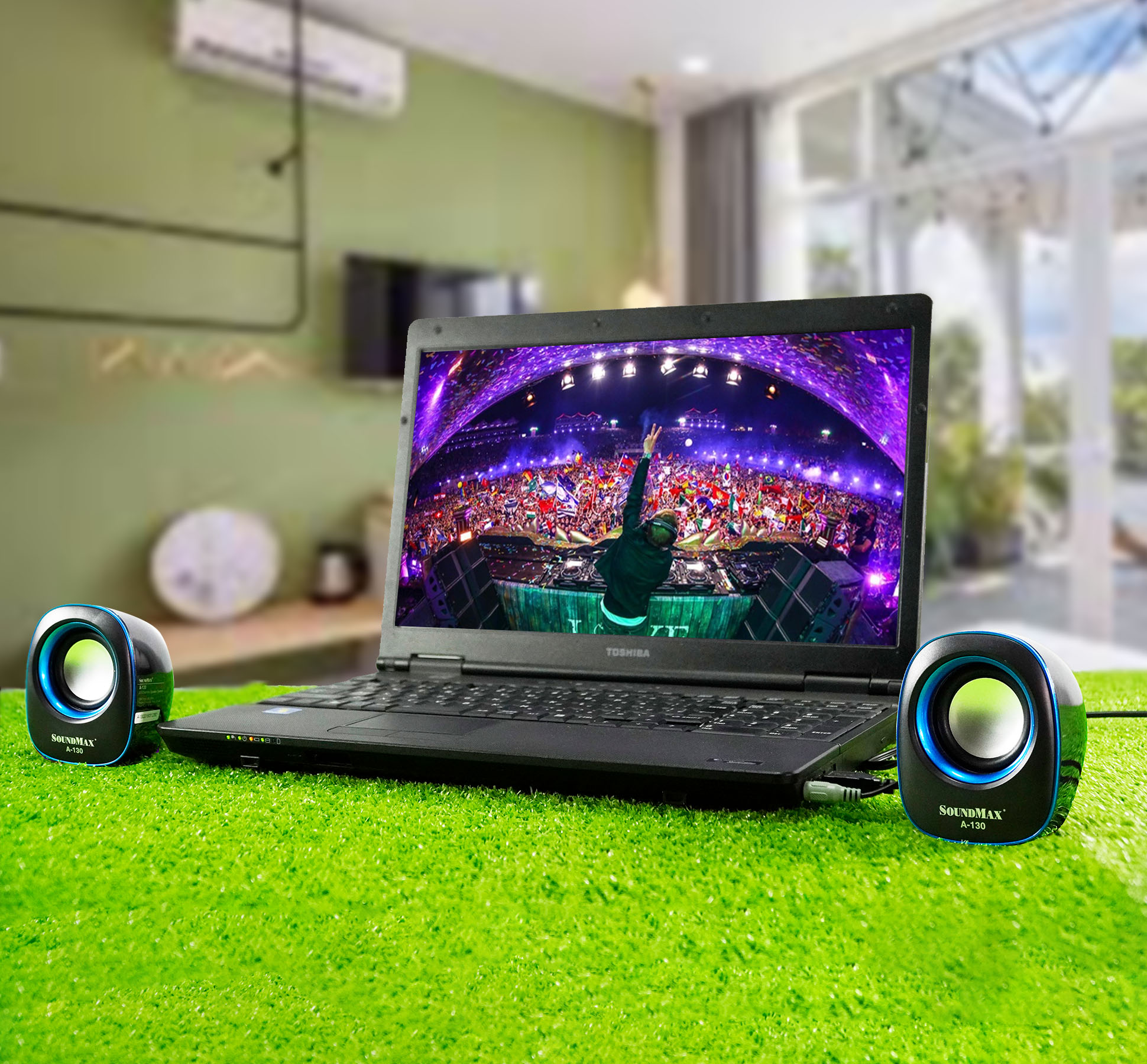 - Hệ thống loa 2.0,cho âm thanh trong trẻo, rõ ràng nghe được nhiều thể loại nhạc.