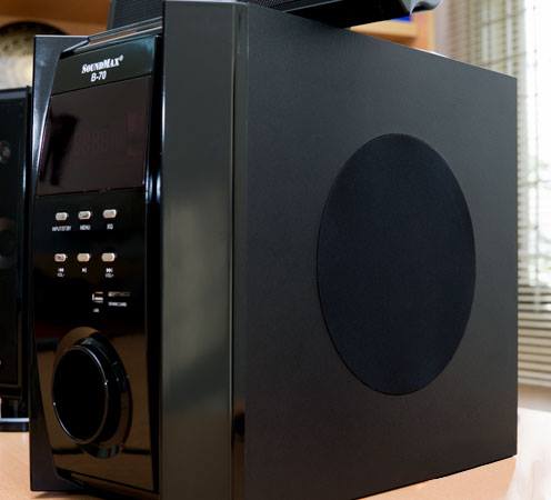 SoundMax B-70 khá bóng bẩy nhưng cứng cáp bởi thiết kế sử dụng nhiều chi tiết góc cạnh và đặc biệt là lưới bảo vệ màng loa thành phần đều bằng kim loại sơn cùng tông màu. Nhìn chung, các loa thành phần và loa sub củaSoundMax B-70 cho cảm giác hài hòa về thiết kế.