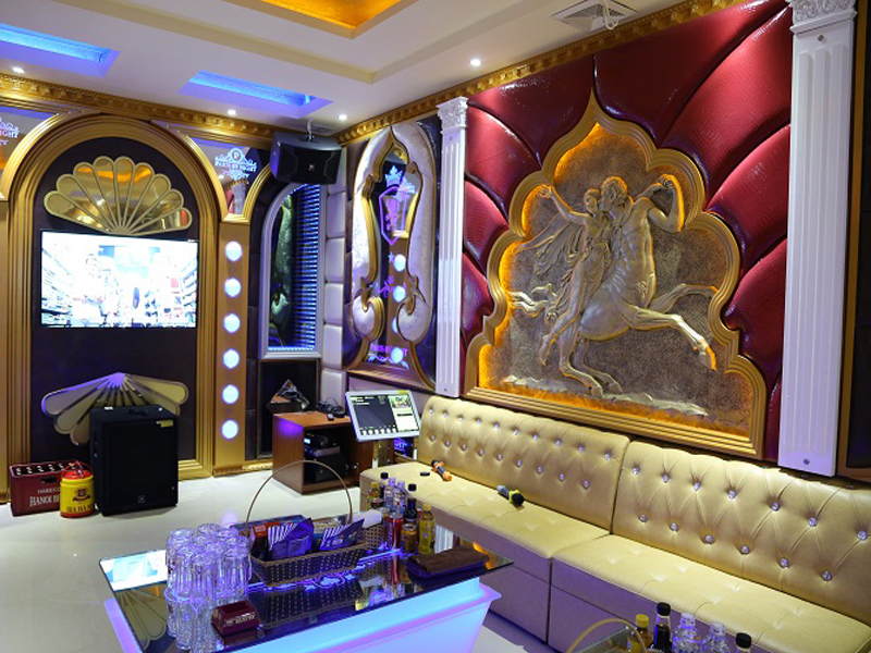 Phòng hát trang bị 2 cặp loa công suất 350W/400W và loa sub công suất 750W là thích hợp nhất.