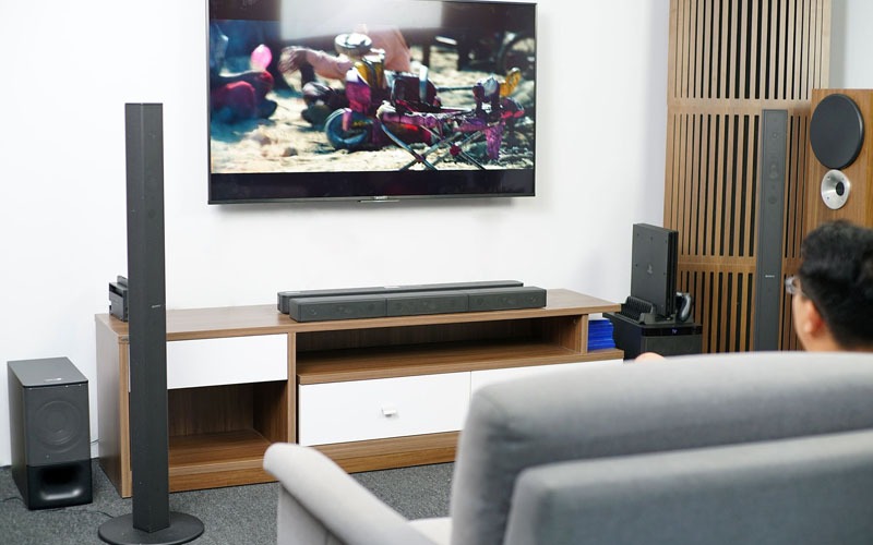 - 1 loa trung tâm: đây là phần quan trọng nhất, chất lượng âm thanh tốt nhất nhất khi loa trung tâm được đặt ở vị trí chính diện hướng người dùng ngồi, hoặc trên dưới TV đều được.