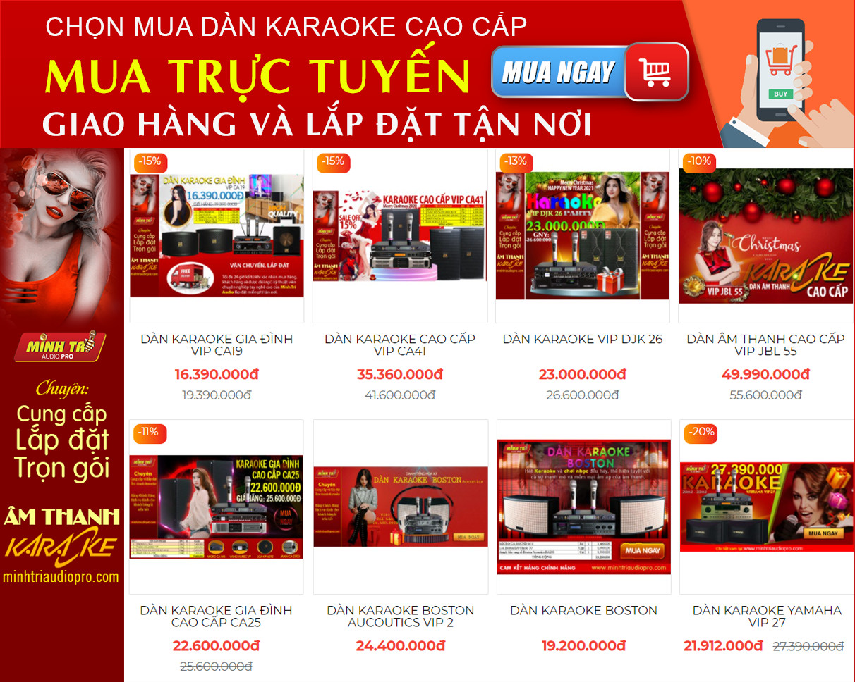 Minh Trí Audio đang có chương trình khuyến mãi Noel – Tết dương lịch 2021. Mọi người nhanh tay sắm cho mình một dàn karaoke tại Minh Trí Audio, để tận hưởng mùa lễ trọn vẹn nhất ngay chính ngôi nhà của mình.