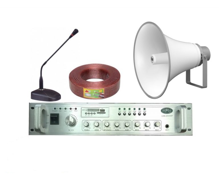 Âm thanh thông báo cho trường học phục vụ cho thông báo tại các tầng, sảnh, cầu thang… dùng để thông báo thông tin từ phòng hiệu trưởng đến các khu vực trong trường học. Đối với hệ thống này thường dùng các dòng loa nén phóng thanh để có tầm phát thanh xa hơn rộng hơn và phủ âm đều hơn. Cấu hình âm thanh trường học chuyên nghiệp thông báo bao gồm các thiết bị :