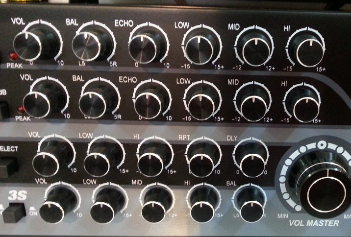 Tiếp theo trong các bước cân chỉnh dàn karaoke, anh em hãy điều chỉnh volume tổng ,volume micro và tất cả chiết áp như Balance, Echo, Low, Mid, Hi, Dly, Rpt, đến vị trí Norman (vị trí giữa) mà nhà sản xuất đã thiết kế.