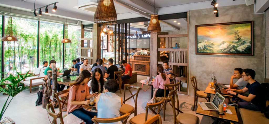 - Tạo không gian làm việc và học tập: Loa quán cafe có vai trò quan trọng để tạo ra không gian phù hợp. m nhạc nền thích hợp có thể giúp khách hàng tập trung, thư giãn và tăng hiệu suất làm việc.