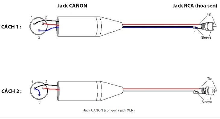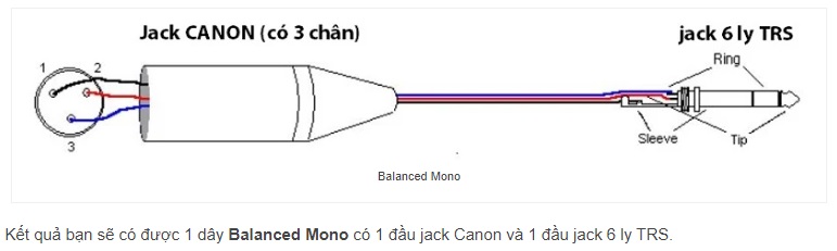Cách thường dùng nhất để kết nối đầu jack Canon với đầu jack 6 Ly TRS là hàn dây như sau: