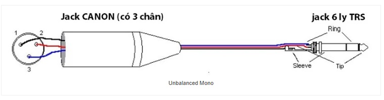 Kết quả bạn sẽ có được 1 sợi dây Unbalanced Mono có 1 đầu jack Canon và 1 đầu jack 6 ly Mono.