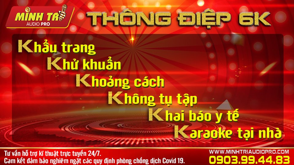 Hiểu được tính chất nghiêm trọng của đợt Dịch COVID 19 lần này. Chúng tôi đã cho ra thông điệp 6k của MINH TRÍ AUDIOPRO khuyến khích khách hàng mua sắm và lắp đặt bộ dàn karaoke tại nhà với mong muốn khách hàng của mình sẽ có những giây phút thư giãn tại gia trong thời gian giãn cách xã hội như hiện nay.